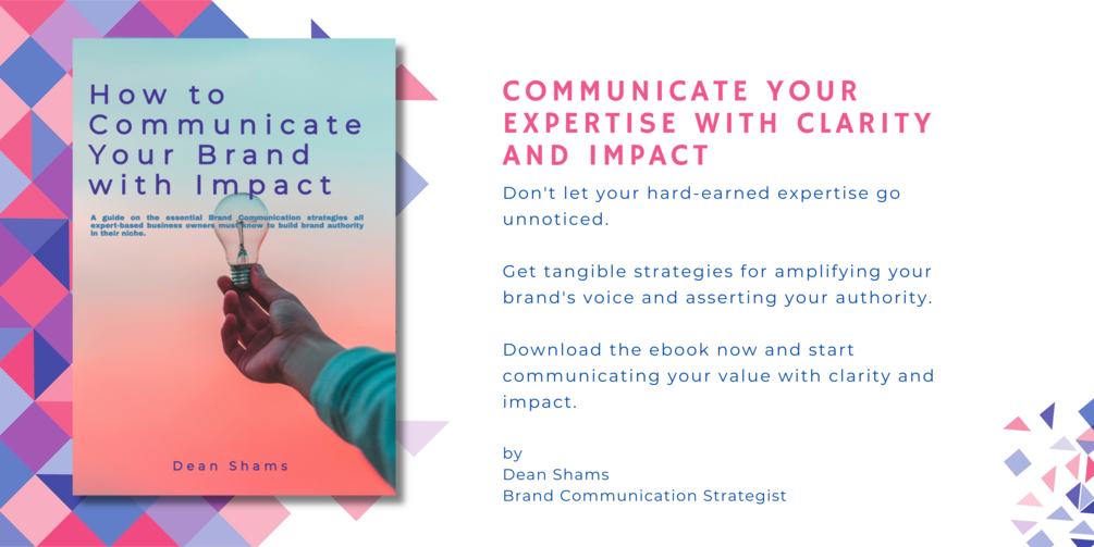 In the ebook "How to Communicate Your Brand with Impact," branding strategist Dean Shams provides a practical, no-nonsense guide to developing an impactful brand communication strategy tailored for expert businesses like yours.